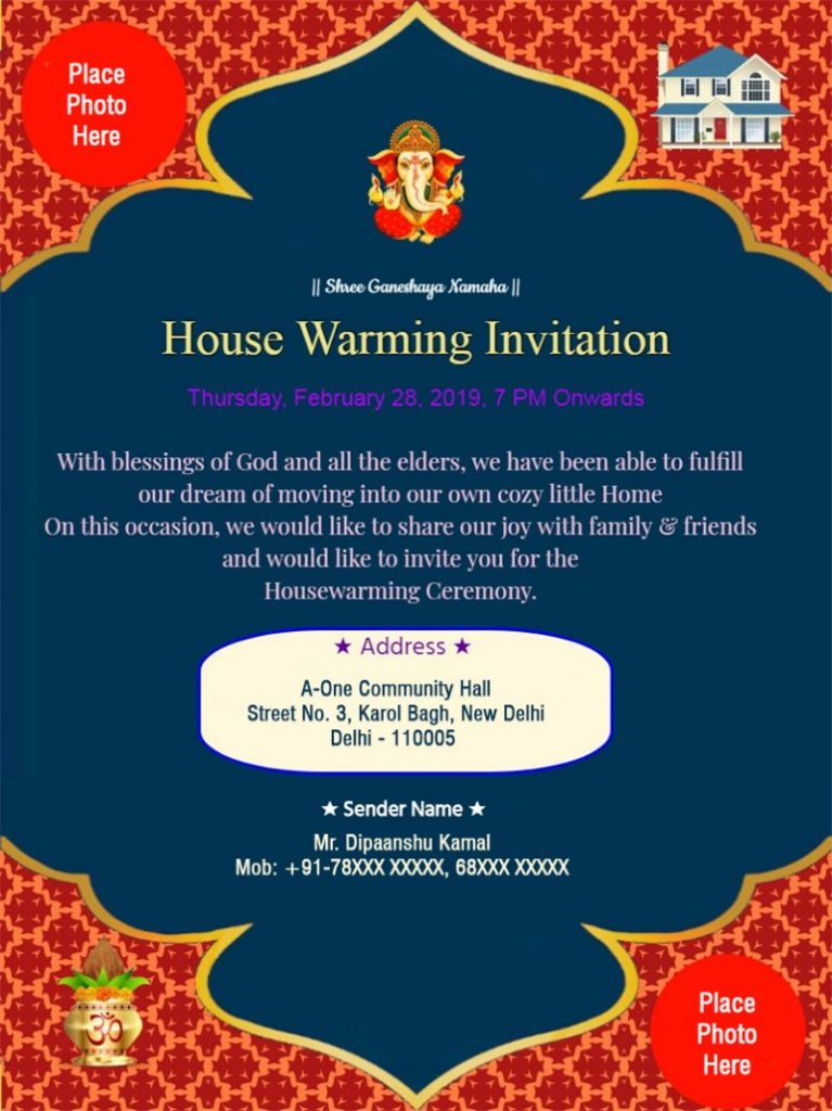 Sample Griha Pravesh Invitation Card, Design, & Background