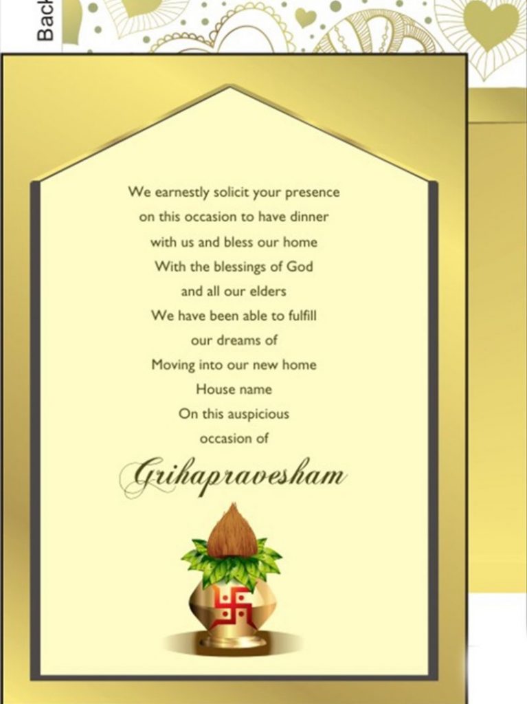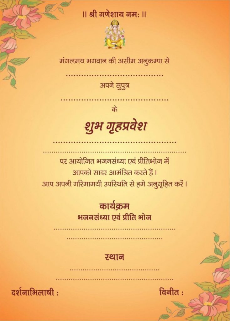 Sample Griha Pravesh Invitation Card, Design, & Background